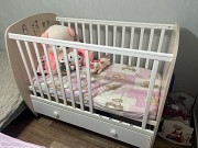 кроватка детская с матрасом. три уровня высоты. С выдвижным ящиком.